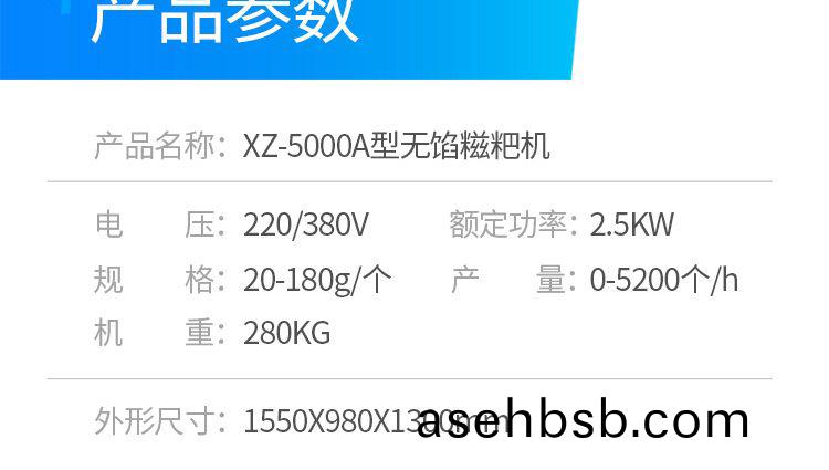 æ—众牌XZ-5000Aæ— é¦…ç³�粑机是一款生产香甜ç³�粑的设备;设备入料斗容é‡�大,采用å�Œç»žé¾™é€�æ–™ã€�å�˜é¢‘æ— çº§é«˜é€Ÿï¼Œäº§å“�大å°�ã€�出皮厚度调节自如ã€�使用方便,精确度高,出皮å�‡åŒ€ã€�畅通。产å“�一次æˆ�型,所出产å“�外形大å°�统一,远比手工制作美观ã€�便æ�·ã€‚