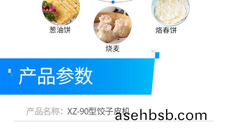 JGB-90型饺å�皮机是我公å�¸å¼€å�‘生产的先进饺å�皮生产设备。å�¯ä»¥ç®€å�•æ›´æ�¢æ¨¡å…·ï¼ˆå�¯æ ¹æ�®å®¢æˆ·å®šåˆ¶ä¸�å�Œå½¢çжã€�尺寸的模具),本设备采用气缸è¿�动。本厂生产的90饺å�皮机,采用多é�“压é�¢è¾ŠåŽ‹é�¢ï¼ŒåŽ‹é�¢æ•ˆæžœä¼˜å¼‚,压出的é�¢çš®ç‹é�“ï¼Œè¿›ä¸€æ¥æ��高所包出的饺å�å�£æ„Ÿã€‚