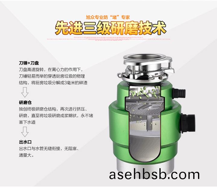 DCLQ38-厨房垃圾处ç�†å™¨ï¼Œè¯¥æœºæ‹¥æœ‰ç‹¬ç‰¹çš„ç²‰ç¢ŽåŠŸèƒ½ï¼Œä½¿æ‰€æœ‰åžƒåœ¾ç ”ç£¨å�¸æ¯’真æ£ä½ŽäºŽ3毫米,用户ä¸�用为管é�“å µå¡žè€Œçƒ¦æ�¼ï¼Œç²‰ç¢Žå�Žç²—ã€�细两ç§�垃圾通过滤å”自动分离,æˆ�浆状的细垃圾éš�æ°´æµ�æµ�入管é�“,粗的垃圾会ç¨�å�œç•™åœ¨ç ”磨仓继ç»ç²‰ç¢Žï¼Œå½¢æˆ�粉末状å�Žï¼Œå†�éš�æ°´æµ�æµ�入管é�“,客户å�¯ä»¥æ”¾å¿ƒä½¿ç”¨ã€‚