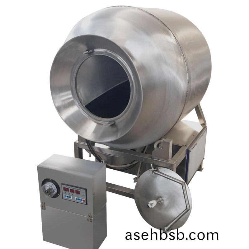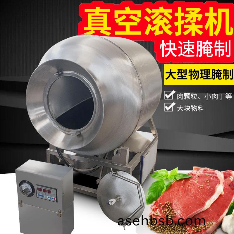 真空滚æ�‰æœºæ˜¯åœ¨çœŸç©ºçжæ€�下,利用物ç�†å†²å‡»çš„原ç�†ï¼Œè®©è‚‰åœ¨æ»šç’内上下翻动,相互撞击ã€�摔打,达到按摩ã€�è…Œæ¸�作用,使肉å�‡åŒ€çš„å�¸æ”¶è…Œæ¸�,æ��高肉的结ç�€åŠ›å�Šäº§å“�的弹性,通过滚æ�‰ã€� 按摩能使肉体蛋白质分解æˆ�水溶性蛋白,易被人体å�¸æ”¶ï¼Œå�Œæ—¶èƒ½ä½¿æ·»åŠ æ–™(淀粉ç‰)与肉体蛋白质互为èž�å�ˆä»¥è¾¾åˆ°è‚‰è´¨å�˜å«©ï¼Œå�£æ„Ÿå¥½ï¼Œå‡ºå�£çŽ‡é«˜ã€‚çœŸç©ºæ»šæ�‰æœºå…·æœ‰è‚ºå‘¼å�¸åŠŸèƒ½ï¼Œè®©äº§å“�在滚ç’内膨胀,缩å°�了往å¤�è¿�动,改善了肉组织的结构,æ��高了切é�¢æ•ˆæžœã€‚本机采用支架普通ä¸�锈钢,滚ç’(接触食物部分)选用食å“�级304ä¸�锈钢æ��质。