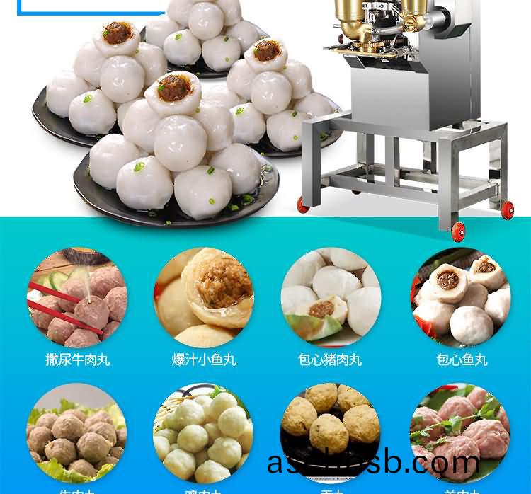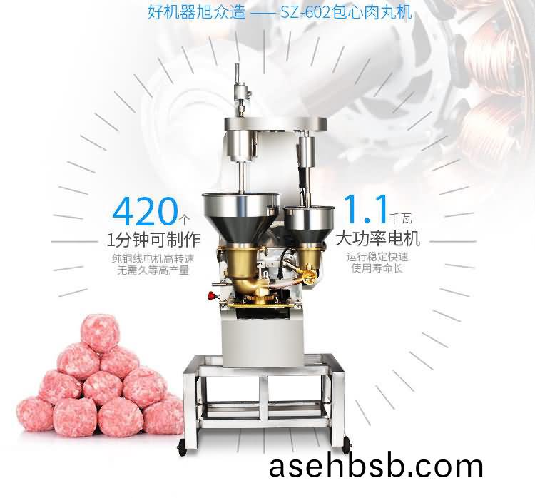 SZ-602包心肉丸机,å�¯ç”Ÿäº§åŒ…心鱼丸ã€�包心猪肉丸ã€�撒尿牛肉丸ã€�爆æ±�å°�鱼丸ç‰å¤šç§�ç�ƒå½¢é…±æ±¤ç±»åŒ…馅产å“�。æ“�控性强ã€�稳定性高ã€�出å“�率稳定;å�¯æŠ½çš®å¢žé¦…,å�šåˆ°çš®è–„馅多。