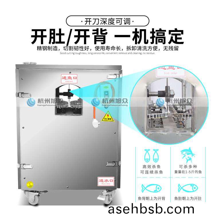 本机整机采用优质ä¸�é”ˆé’¢åˆ¶é€ ï¼Œè€�磨è€�用,符å�ˆé£Ÿå“�å�«ç”Ÿæ ‡å‡†ã€‚把鱼放在设备的入料å�£ï¼Œè¾“é€�链æ�¡è‡ªåŠ¨æŠŠé±¼é€�到切割刀片处将开肚/开背(鱼肚æœ�上放为开肚,鱼背æœ�上放为开背),适用于水产å“�åŠ å·¥åŽ‚ï¼Œè‚‰ç±»åŠ å·¥åŽ‚ï¼Œé±¼ç±»ç½�头厂,大型é¤�饮行业ç‰å�•ä½�。本产å“�ä¸�会对鱼头ã€�鱼尾ã€�é±¼é³�é€ æˆ�æ�Ÿä¼¤ã€‚