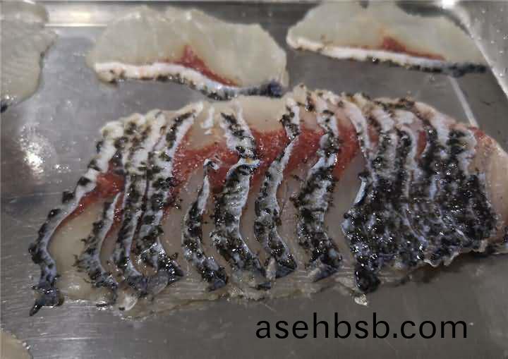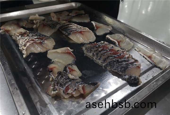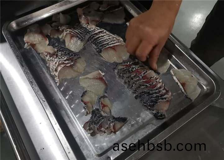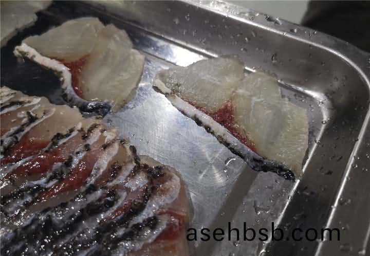 鱼鳞去的是很干净,但是鱼鳃盖上(shang)的鱼(yu)皮(pi)有些破损,因为客户做的也不会剁椒鱼头类的,所(suo)以对(dui)于这些小破损也不介意,试完后发现有(you)鱼(yu)片机,便想着(zhe)白鲢反正都已经杀好了,用切鱼(yu)片机片鱼片看看效果,于是也给安排上了切(qie)鱼片机(ji):