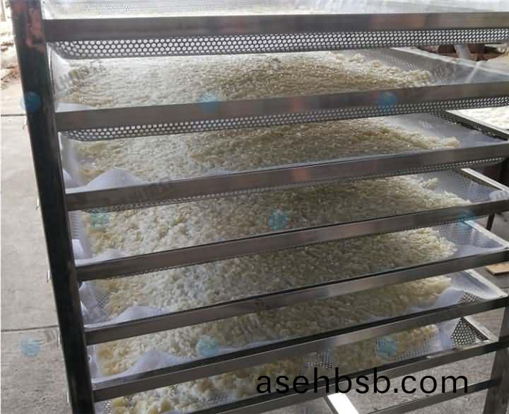 4、银耳片都摆放好后推(tui)入热泵烘干房中,因为物料不(bu)同烘干时间不一致