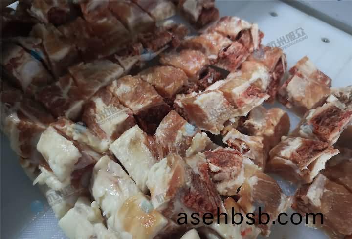 排(pai)骨(gu)可以(yi)选择(ze)用禽肉类剁块(kuai)机剁(duo)块(kuai)吗(ma)?可以的,小(xiao)排(pai),肋排(pai)都(dou)可(ke)以(yi)的(de)哦,但是筒(tong)骨、猪(zhu)蹄、大排等(deng)就不(bu)适(shi)合(he)用(yong)剁块(kuai)机(ji)剁(duo)块,得(de)选(xuan)择自动切(qie)骨(gu)机(ji)器(qi)。那么禽肉(rou)类(lei)剁(duo)块(kuai)机剁(duo)排(pai)骨(gu)块效(xiao)果:
