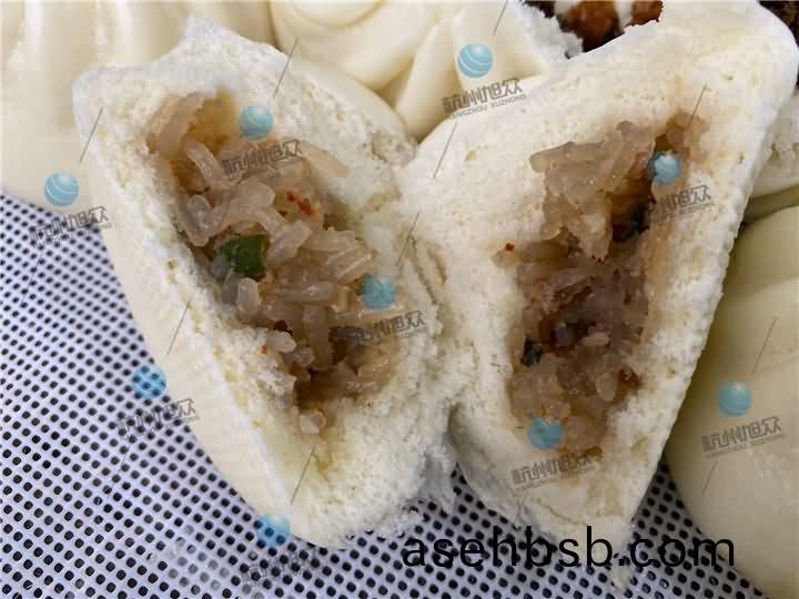 包子机(ji)现场演(yan)示做(zuo)粉(fen)丝包和梅干(gan)菜(cai)包子效(xiao)果: