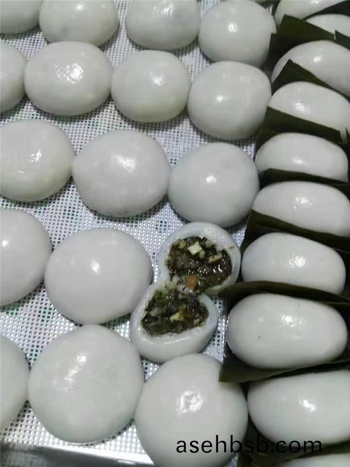 旭(xu)众(zhong)VFD-4000A汤(tang)圆机做叶儿(er)粑(ba)啦,也可以(yi)成(cheng)为猪儿(er)粑(ba),效(xiao)果是(shi)杠杠的(de),我(wo)们来看下未蒸前与(yu)蒸好(hao)后(hou)的叶(ye)儿粑效果:
