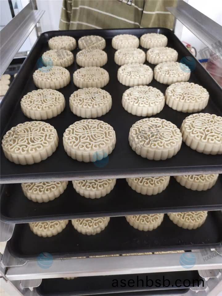 旭众68型月(yue)饼(bing)包馅(xian)机+64型(xing)月(yue)饼(bing)成(cheng)型(xing)机(ji)+08型(xing)自(zi)动排盘(pan)机(ji)组(zu)成(cheng)的(de)月(yue)饼(bing)机(ji)生产(chan)线