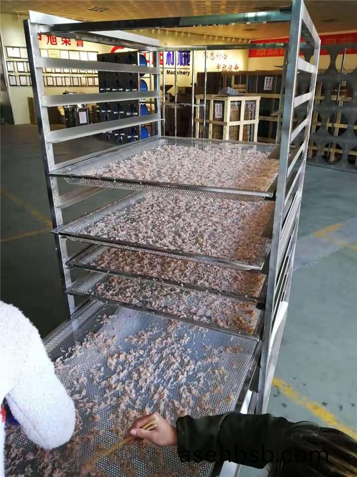 热(re)泵(beng)烘(hong)干机干燥大虾(xia)智(zhi)能控(kong)制(zhi),节(jie)能无污(wu)染(ran),可分阶(jie)段(duan)设置温(wen)度(du)、湿(shi)度、干(gan)燥(zao)时间(jian)等(deng),熟练掌(zhang)握烘(hong)干(gan)工(gong)艺,干燥(zao)出的大虾(xia)品(pin)质(zhi)好(hao),附加值高(gao)。且烘(hong)干(gan)过(guo)程(cheng)无需专(zhuan)人看管(guan),省(sheng)工省(sheng)力。把(ba)虾(xia)米放(fang)到烘(hong)干(gan)盘上(shang),一(yi)盘(pan)一盘(pan)放(fang)到(dao)烘干(gan)架上(shang),然(ran)后推进(jin)烘干机(ji),要(yao)适当(dang)翻(fan)动(dong),使(shi)其迅速(su)、均匀干(gan)燥。海鲜类产品烘(hong)干温度(du)宜保持(chi)低(di)温状(zhuang)态,所(suo)以(yi)建议(yi)考(kao)虑烘(hong)干(gan)机(ji)的客(ke)户选择(ze)双效(xiao)低温(wen)高温(wen)烘干房(fang)一体机。