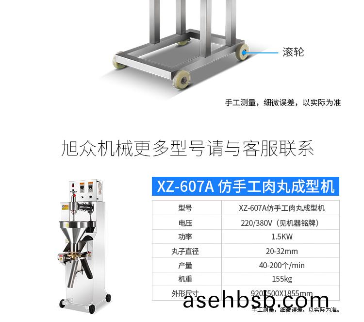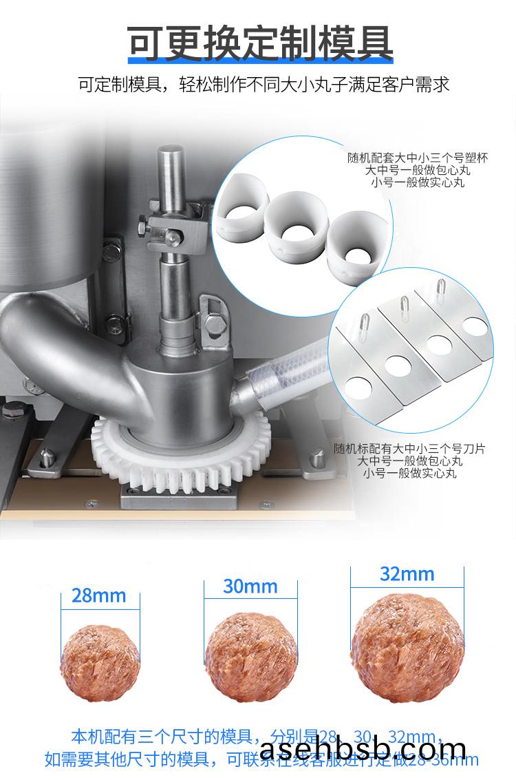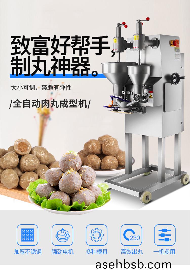 肉(rou)丸(wan)成型(xing)机为(wei)包馅(xian)肉(rou)制(zhi)品成丸(wan)设备,能生产(chan)出(chu)各(ge)种大小(xiao)尺寸(cun)的包(bao)馅鱼(yu)丸(wan)、撒尿牛丸(wan)、猪(zhu)肉(rou)丸、牛(niu)肉(rou)丸(wan)、及包馅(xian)贡丸等,并(bing)可(ke)做不(bu)包(bao)馅的(de)各类丸子。该(gai)设备具有(you)速度(du)快、卫生(sheng)方便、易(yi)拆洗等(deng)特(te)点(dian),可代(dai)替(ti)几十个(ge)人手工(gong)生产(chan),可(ke)为厂家(jia)节(jie)省人(ren)员(yuan)的(de)投入、提(ti)高生产速(su)度。