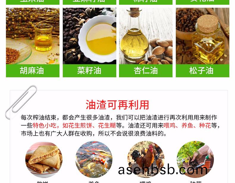③榨笼和榨螺�过多次试验采用真确��的排列方�,使物料被压榨得更干净,出油率更高,饼枯残油率更低;
