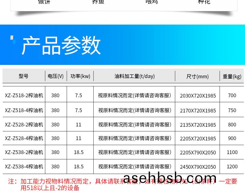 型� | XZ-Z518-2榨油机 | XZ-518-4榨油机 |