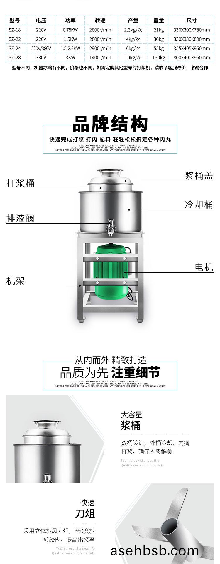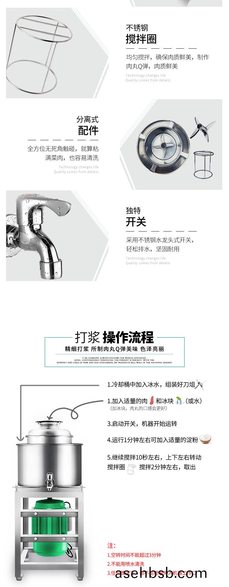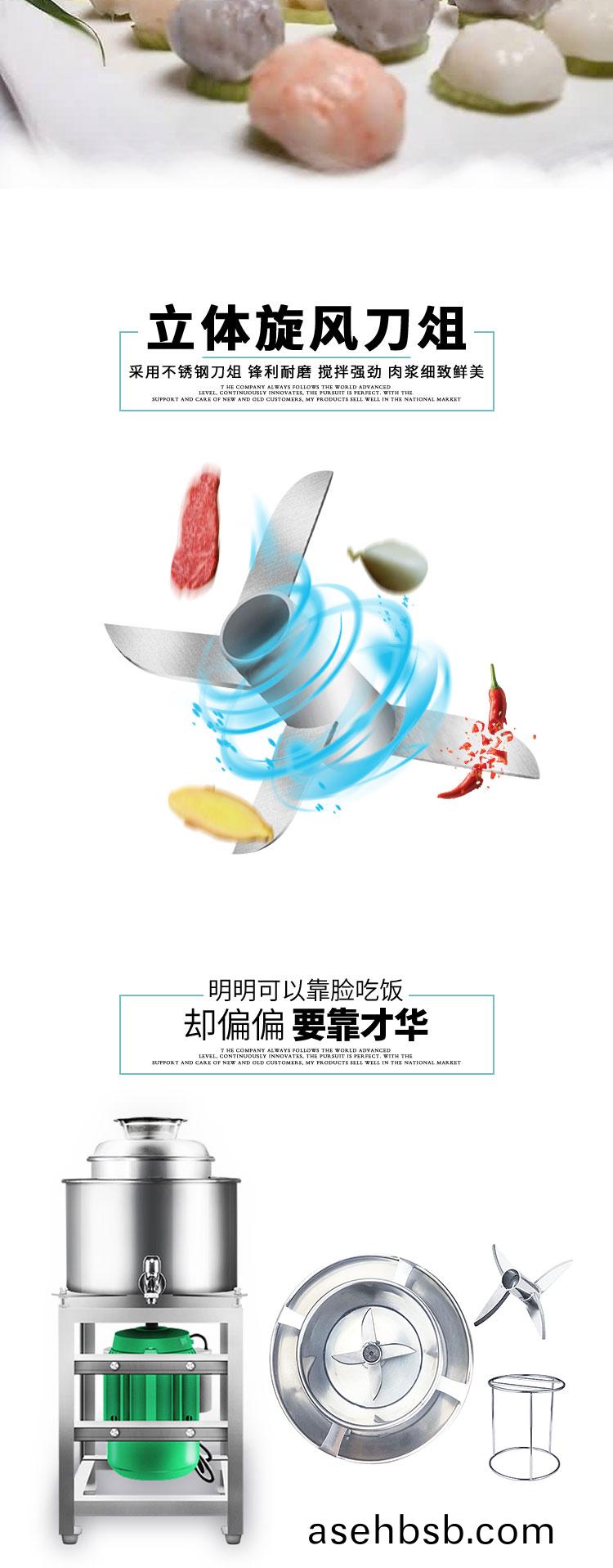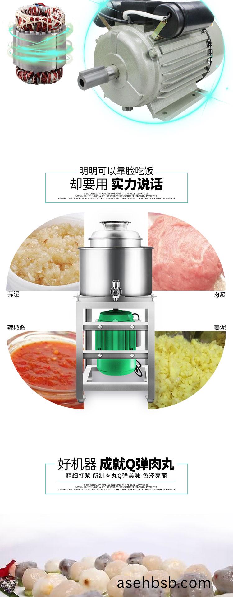 本产å“�一次装肉é‡�为2-8æ–¤(大ã€�ä¸ã€�å°�åž‹)。开机2-3分钟å�³å�¯å®Œæˆ�打肉ã€�é…�æ–™ã€�æ�…拌æˆ�浆,比手工锤打的肉浆精细,所产肉丸ã€�鱼丸弹性好,色泽æ´�白。