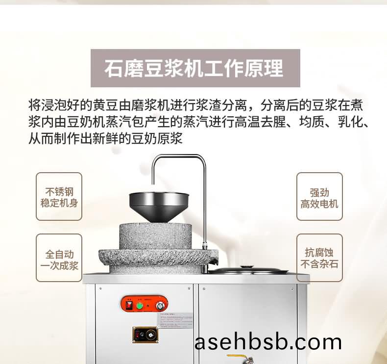 1�石磨使用寿命长,电机带动,控制方便,磨浆速度快,过滤采用下沉�滤网,易清洗;