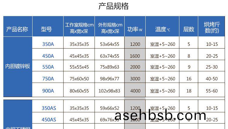 产å“�å��ç§° | åž‹å�· | å·¥ä½œå®¤è§„æ ¼cm | å¤–åž‹è§„æ ¼mm | 电压 | 功率 | 温度 | 层数/æ–¤(约) |