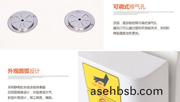 本系列烤箱在工作室å�Žéƒ¨è£…有å�‘çƒç®¡ï¼Œå�Žé�¢è£…有鼓风装置,温度控制仪控制温度æ�’定å�Šé«˜ä½Žï¼Œå·¥ä½œæ—¶ç»�å�‘çƒç®¡åŠ çƒå†�ç»�鼓风装置循环æµ�动,确ä¿�温度å�‡åŒ€ï¼Œå››å‘¨åœ†å¼§è®¾è®¡ï¼Œæ��æ�¿ä¸Šä¸‹é—´è·�å�¯è°ƒï¼Œå†…置感温探头。