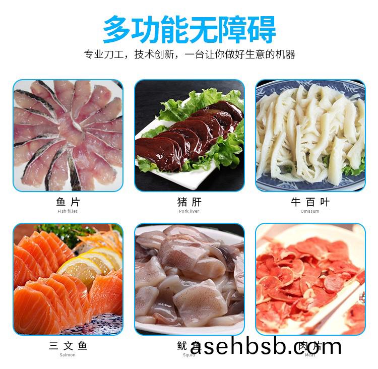 ♦本机的驱动方å¼�简å�•,æ“�作便利,安全å�¯é� ,刀片容易拆洗,采用固定方å¼�,切片é�¢å¹³æ•´å…‰æ»‘,适å�ˆäºŽæ–œåˆ‡ä¸‰æ–‡é±¼ï¼Œé±¿é±¼ç‰ç‰é±¼ç±»æˆ–者斜切猪肚牛肚ç‰è‚‰ç±»ï¼›