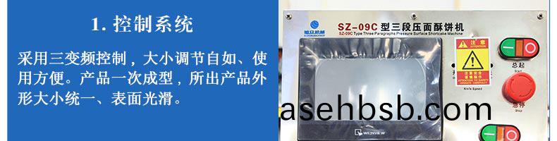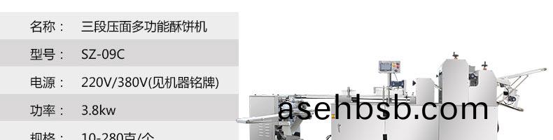 SZ-09C三段压é�¢é…¥é¥¼æœºï¼Œç”Ÿäº§é€Ÿåº¦ã€�制å“�大å°�ã€�é‡�é‡�ã€�皮馅比例å�¯éš�时调整ã€�å�˜æ›´ã€‚适用于è‹�å¼�月饼ã€�绿豆饼ã€�è€�婆饼ã€�葱油饼ã€�鲜花饼ã€�肉æ�¾é¥¼ã€�金å�Žé…¥é¥¼ç‰ã€‚适用于大ã€�ä¸åž‹ç³•饼生产厂家,å…�è´¹æ��供工艺技术。