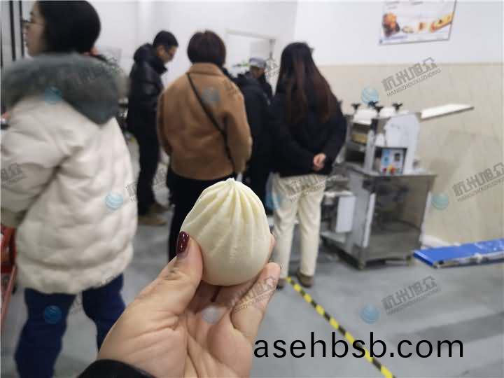 旭众包子机究竟给人们带来了多(duo)大的方便?今日来了几波客户(hu)来考察(cha)包子机设备,印象比较深的就是要做2种(zhong)不同馅料的客(ke)户,提前将蔬菜馅寄过来冷藏,今日(ri)终于到达还带了今日刚拌好的肉(rou)馅,一(yi)个是想看包子机能将两(liang)种(zhong)肉馅和(he)菜馅包合(he)住(zhu),再一个包(bao)子机效率及外(wai)观,但是要用价格实惠花纹十二褶的包子机给他演示效果(guo),于是便安排了SZ-612包子机,一小(xiao)时(shi)1800个成(cheng)品,十二(er)褶花(hua)纹,价(jia)格(ge)方便也算是(shi)包子机中第二优惠,在(zai)现场的老(lao)板(ban)们(men)可以很直(zhi)观地看到,从和面到做包子全程仅需1-2名师傅便可完成,实际只需一个也(ye)可以,只不过(guo)多一个人(ren)方便快速将成型的包(bao)子(zi)摆盘好。