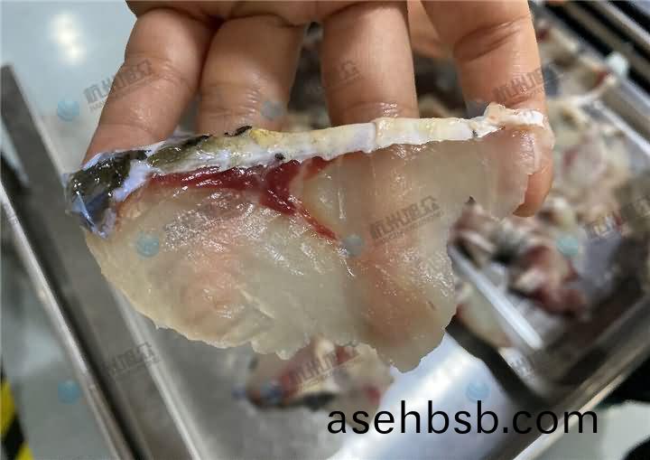 全(quan)自(zi)动切(qie)鱼(yu)片(pian)机现(xian)场(chang)演示(shi)切草(cao)鱼片(pian),在切(qie)草鱼(yu)片之(zhi)前要做的(de)工序(xu),先(xian)去(qu)鳞开肚去(qu)内脏(zang)去(qu)鱼头后(hou),再将(jiang)鱼大骨去(qu)掉(diao),不(bu)去的话(hua)刀(dao)片容易(yi)损坏(huai),所(suo)以(yi)要(yao)将鱼大(da)骨剃掉(diao)后(hou)再(zai)用(yong)鱼片(pian)机30°斜度切(qie)成2.3mm鱼片(pian):
