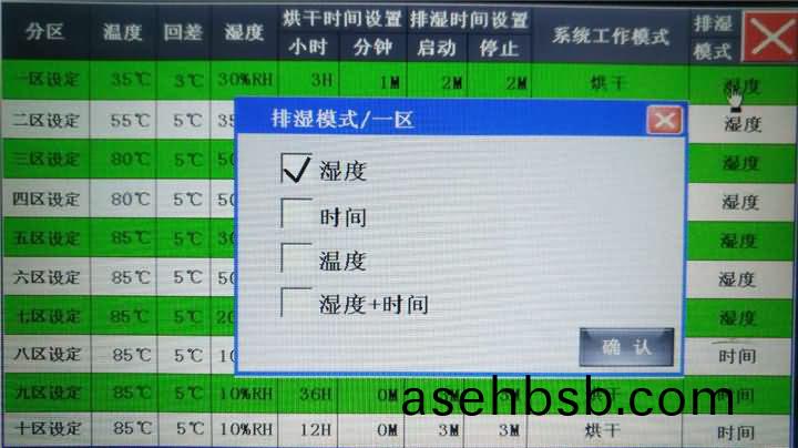 按此(ci)键弹出(chu)右边(bian)弹窗(chuang)。未(wei)运行时可以(yi)选择(ze)从(cong)第几(ji)个(ge)阶(jie)段开始(shi)烘(hong)干到(dao)第(di)几个阶(jie)段结束(shu)。这里(li)的阶段与(yu)【用户(hu)设置】里(li)的几区(qu)相对(dui)应。选择好(hao)后(hou)点【确(que)定(ding)】设备启动(dong)。