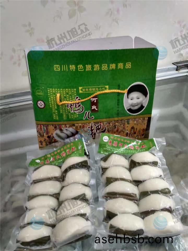 四川(chuan)特(te)色(se)鸭儿粑又(you)名猪(zhu)儿(er)粑,是(shi)一道宜宾(bin)名(ming)点,该品色泽洁白晶亮(liang),皮(pi)薄鲜嫩,咬(yao)一口(kou)浓(nong)香扑(pu)鼻(bi),油(you)而不腻(ni),芳香(xiang)爽口,具有(you)不粘叶、不粘(zhan)筷、不粘牙(ya)等(deng)“三不(bu)粘”的特点(dian)。主要原料(liao)有猪(zhu)肉(rou)、糯(nuo)米(mi)、鸭(ya)儿(er)粑(ba)叶(良姜(jiang)叶)、芽(ya)菜、各种(zhong)洗沙(sha)等(deng)。味(wei)道很(hen)好,油(you)而(er)不(bu)腻,芳香爽口(kou)。以其(qi)鲜(xian)嫩如(ru)雏(chu)鸭而得名(ming)。随着鸭(ya)儿粑(ba)深(shen)受(shou)人们(men)的喜(xi)爱(ai),生(sheng)产效(xiao)率(lv)远(yuan)远跟(gen)不上销售(shou)量(liang),于是(shi)老(lao)板便(bian)考虑用(yong)汤(tang)圆机高(gao)效生产鸭(ya)儿粑(ba),而(er)他(ta)的(de)这(zhe)一行(xing)动证明(ming)了汤圆机(ji)真(zhen)的帮大(da)忙了(le)!现(xian)在(zai)每(mei)天鸭(ya)儿(er)粑(ba)的产(chan)量(liang)远(yuan)远高(gao)出(chu)当时(shi)请(qing)人工包(bao)鸭(ya)儿(er)粑(ba)的效率,成(cheng)品外(wai)形美(mei)观(guan),大(da)小(xiao)一(yi)致,汤圆机(ji)实(shi)乃(nai)不(bu)错的得(de)力(li)助(zhu)手(shou)!